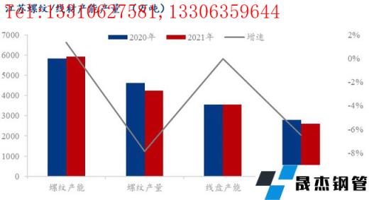 據(jù)調(diào)研,2021年江蘇省螺紋產(chǎn)能5804萬(wàn)噸,增加1%。盤(pán)線(xiàn)產(chǎn)能3550萬(wàn)噸,保持不變。螺紋產(chǎn)量4159.88萬(wàn)噸,同比下降8%,盤(pán)線(xiàn)產(chǎn)量2612.8萬(wàn)噸,同比下降6%。