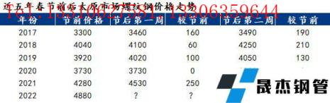 概述:春節(jié)假期前,山西省內建筑厚壁無縫鋼管市場價格整體呈偏強調整態(tài)勢運行,下游工地基本處于停工狀態(tài),市場整體交易停滯狀態(tài),商戶陸續(xù)放假休市,市場流通資源報價基本與無縫厚壁鋼管廠家調價步調一致。春節(jié)假期期間,山西省內部分無縫厚壁鋼管廠家安排檢修,市場整體處于休市狀態(tài),供需格局變動不大。