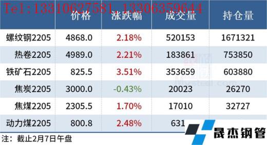 免責(zé)聲明:本網(wǎng)站(山東聊城晟杰無(wú)縫鋼管廠(chǎng)www.subnucleon.com)刊載的“2022年02月07日午報(bào):鋼價(jià)全線(xiàn)上漲,鐵礦石期貨漲逾3%”等均源于網(wǎng)絡(luò),版權(quán)歸原作者所有,且僅代表原作者觀點(diǎn),本文所載信息僅供參考。轉(zhuǎn)載僅為學(xué)習(xí)與交流之目的,如無(wú)意中侵犯您的合法權(quán)益,請(qǐng)及時(shí)聯(lián)系刪除。本網(wǎng)站刊登此篇文章并不意味著本站贊同其觀點(diǎn)或證實(shí)其內(nèi)容的真實(shí)性,我們不對(duì)其科學(xué)性、嚴(yán)肅性等作任何形式的保證。如果侵犯了您的版權(quán),請(qǐng)盡快聯(lián)系我們予以撤銷(xiāo),謝謝合作!