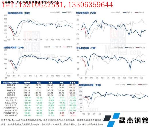 據統計,建材方面,分品種來看,螺降線增;分域來看,除東北、華北和西北,其余區域均有小幅減量;從省份看,河南、湖北、廣西和江蘇減量相對較多;江西和遼寧明顯增量;從工藝上看,本周長流程整體增量,短流程持續減量。整體來看,長流程生產企業在節假日期間依舊維持相對正常生產狀態,短流程延續停休,因此增減對沖,建材供應變化不大。熱卷方面,本周熱軋產量大幅下降,主要降幅地區是華北、華中、華東地區,主要是冬奧會限產導致無縫厚壁鋼管廠家受停限產影響,導致產量下降,且華北地區仍有無縫厚壁鋼管廠家剛開始進行停限產,預計下周產量降進一步下降。