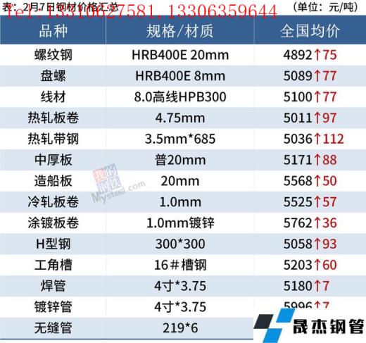 建筑厚壁無縫鋼管:2月7日,全國31個主要城市20mm三級抗震螺紋鋼均價4892元/噸,較節前(1月30日)上漲75元/噸。短期來看,由于需求未真正啟動,現貨市場上漲主要還是情緒面推動。短期需要關注消費恢復情況,若市場存在高價格低需求,則需謹慎貿易商集中兌現利潤。預計8日國內建筑厚壁無縫鋼管價格或將繼續趨強運行。