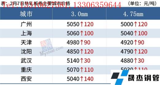 熱軋板卷:2月7日,全國24個主要城市4.75mm熱軋板卷均價5011元/噸,較節前(1月30日)上漲97元/噸。目前整體市場上漲幅度較大,在冬奧會限產背景下,需求將逐漸趨于好轉,現貨市場情緒較為樂觀,各地厚壁無縫鋼管現貨價格全面上漲。春節期間,主流無縫厚壁鋼管廠家均上調2月出廠價,截止2月6日,全國五大主要厚壁無縫鋼管品種總庫存共增加477.47萬噸至2030.02萬噸,較去年同期下降27%,環比增幅30.77%。故預計8日熱軋板卷價格或將穩中上行。