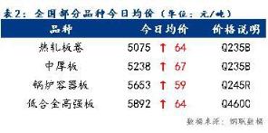 今日全國(guó)部分品種均價(jià)寬幅上漲,整體漲幅為59~67元/噸。