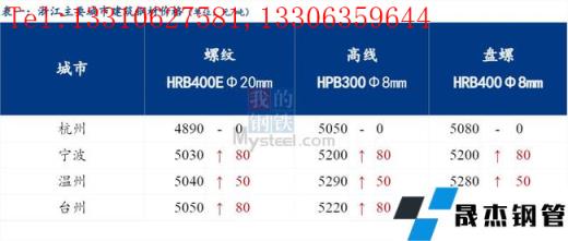 從浙江省今日價格來看,省內價格有所上漲。其中杭州市場建筑厚壁無縫鋼管價格較昨日持平;寧波市場建筑厚壁無縫鋼管價格統漲80元/噸;臺州市場建筑厚壁無縫鋼管價格統漲80元/噸;溫州市場建筑厚壁無縫鋼管價格統漲50元/噸 。
