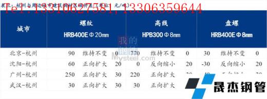 從區域價差來看,今日東北、華南、華中地區價格漲幅均高于杭州市場價格漲幅,區域價差正向擴大;杭州市場與華北地區建筑厚壁無縫鋼管價差維持不變。