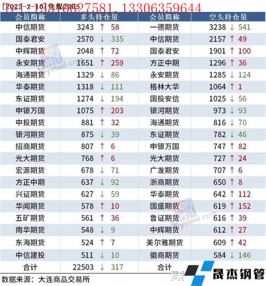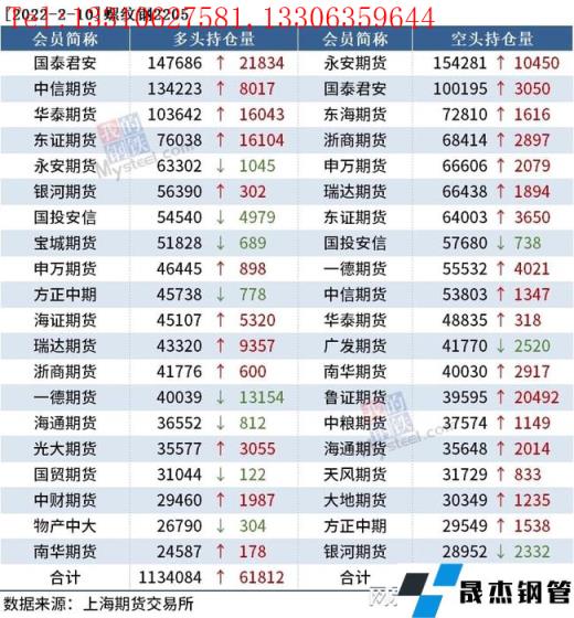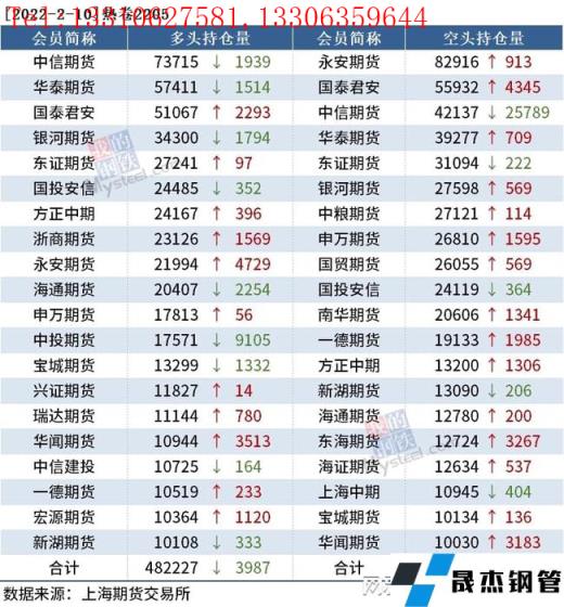 截至2月10日收盤,螺紋鋼2205收4955元/噸,漲1.52%;熱卷2205收5069元/噸,漲0.72%;鐵礦石2205收821.5元/噸,漲3.2%。