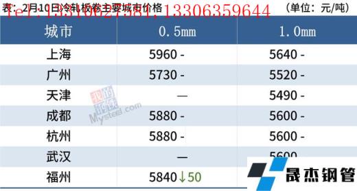 冷軋板卷:2月10日,全國(guó)24個(gè)主要城市1.0mm冷卷均價(jià)5593元/噸,較上個(gè)交易日下跌1元/噸。今日黑色系期貨盤面整體呈低開高走的態(tài)勢(shì),在期貨盤面的影響下,午后市場(chǎng)詢單人數(shù)明顯增加,但由于下游客戶觀望情緒較為濃厚,今日整體成交一般。庫(kù)存方面,據(jù)不完全統(tǒng)計(jì),現(xiàn)冷軋無(wú)縫厚壁鋼管廠家?guī)齑?3.71萬(wàn)噸,周環(huán)比增加0.5萬(wàn)噸,社會(huì)庫(kù)存139.17萬(wàn)噸,周環(huán)比增加5.47萬(wàn)噸,周消費(fèi)量67.89萬(wàn)噸,環(huán)比減少1.26萬(wàn)噸。綜合來(lái)看,故預(yù)計(jì)11日國(guó)內(nèi)冷軋板卷價(jià)格或?qū)⒄鹗庍\(yùn)行。