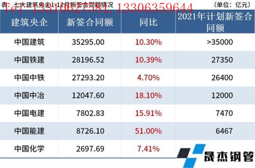 免責聲明:本網站(山東聊城晟杰無縫鋼管廠www.subnucleon.com)刊載的“7家建筑央企2021年新簽合同總額超12萬億元,同比增長12%”等均源于網絡,版權歸原作者所有,且僅代表原作者觀點,本文所載信息僅供參考。轉載僅為學習與交流之目的,如無意中侵犯您的合法權益,請及時聯系刪除。本網站刊登此篇文章并不意味著本站贊同其觀點或證實其內容的真實性,我們不對其科學性、嚴肅性等作任何形式的保證。如果侵犯了您的版權,請盡快聯系我們予以撤銷,謝謝合作!