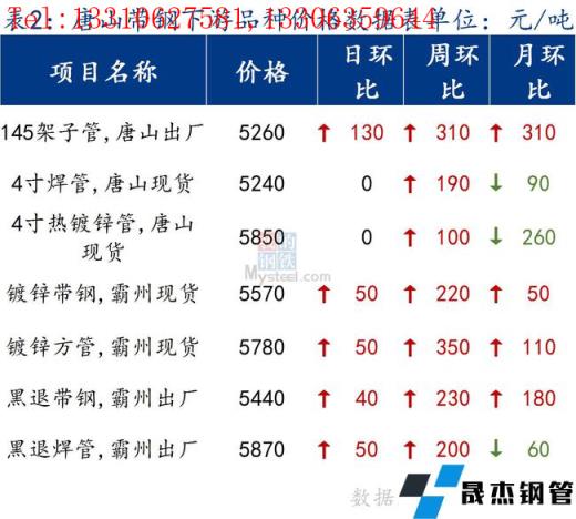 145帶鋼出廠5070元/噸,較昨日漲100元/噸。355帶鋼市場現貨價格4980元/噸,較昨日持平。焊管價格5240元/噸,鍍鋅管價格5850元/噸,較昨日持平。
