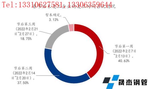 2、春節(jié)期間樣本企業(yè)7成以上比例正常放假,3成以下部分停產(chǎn)或沒有停產(chǎn)且滿負(fù)荷運轉(zhuǎn),響應(yīng)“就地過年”倡議的員工比例在60%以上的達(dá)64.65%,這為節(jié)后各項經(jīng)濟(jì)活動的有序恢復(fù)維持良好的保障條件,節(jié)后尚未復(fù)工的企業(yè)僅為9.09%。春節(jié)后未復(fù)工企業(yè)的具體復(fù)工時間,節(jié)后第一周(2022年2月7日-2月13日)能全部復(fù)工的占比40.63%;節(jié)后第二周(2022年2月14日-2月20日)能全部復(fù)工的占比37.50%;節(jié)后第三周(2022年2月21日-2月27日)能全部復(fù)工的占比18.75%。復(fù)工后企業(yè)產(chǎn)能利用率恢復(fù)到50%以上的企業(yè)占比77.78%, 2月底企業(yè)復(fù)工比例達(dá)到98.98%。