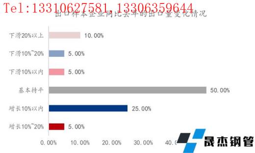從圖26上看,20.20%的出口企業(yè)中,出口價格呈現(xiàn)不同程度上漲的企業(yè)占比為40%,基本持平的企業(yè)占比為55%,呈現(xiàn)不同程度下降的企業(yè)占比為5%。