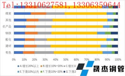 與去年同期對比來看,在經濟下行壓力加大的情況下,調研樣本企業訂單仍然出現較為可觀的增長,說明國內經濟的韌性較強。但值得注意的是,訂單同比增加的企業數量占比較去年已經出現下滑勢頭,尤其是增幅超過20%訂單的企業數量占比下滑4.2分百分點。從各行業情況來看,煤炭行業中50%的企業當前訂單量同比都有所增長,其后依次為有色、能化、農產品等行業,均有35%以上的訂單量增長,說明今年整體需求仍比較旺盛。