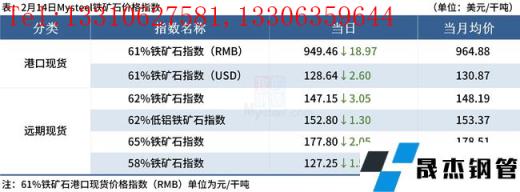 ◎ 2月14日,全國主港鐵礦石成交90.30萬噸,環比增7.9%;237家主流貿易商建材成交5.61萬噸。
