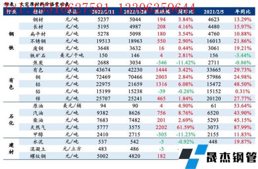 免責(zé)聲明:本網(wǎng)站(山東聊城晟杰無(wú)縫鋼管廠www.subnucleon.com)刊載的“周報(bào):大宗原材料價(jià)格周報(bào)(2.07-2.11)”等均源于網(wǎng)絡(luò),版權(quán)歸原作者所有,且僅代表原作者觀點(diǎn),本文所載信息僅供參考。轉(zhuǎn)載僅為學(xué)習(xí)與交流之目的,如無(wú)意中侵犯您的合法權(quán)益,請(qǐng)及時(shí)聯(lián)系刪除。本網(wǎng)站刊登此篇文章并不意味著本站贊同其觀點(diǎn)或證實(shí)其內(nèi)容的真實(shí)性,我們不對(duì)其科學(xué)性、嚴(yán)肅性等作任何形式的保證。如果侵犯了您的版權(quán),請(qǐng)盡快聯(lián)系我們予以撤銷(xiāo),謝謝合作!
