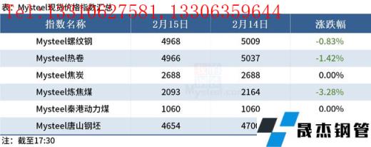 ◎ 2月15日唐山遷安地區普方坯資源出廠含稅下調50,報4650元。