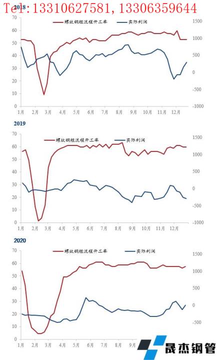 在開工率達到相對高位的情況下,電爐鋼的實際利潤并不會推動其上升,實際利潤對于開工率的向下拉動作用反而更為明顯,據2018年到2020年的開工率數(shù)據推算,當實際利潤下降幅度在100元/噸以上時,開工率的降幅基本都在5%左右。2020年5~6月份的無縫厚壁鋼管廠家電爐生產情況調查統(tǒng)計的文章中同樣可以看出,當期厚壁無縫鋼管成本上移,部分電爐廠已現(xiàn)虧損的情況下,主動檢修減產的情況是有所展現(xiàn)的。2018年和2019年的諸多文章同樣也可以印證。