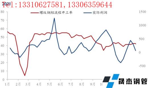 而對于2021年的數(shù)據來說無論是相關分析還是回歸分析結果表現(xiàn)出與其他年份有不同的結果,這與2021年的特殊情況有關。由于2021年螺紋鋼價格的急劇變化,導致電弧爐實際利潤具有了極強的波動性,而且由于能耗雙控,從8月底電弧爐無縫厚壁鋼管廠家被嚴格限產,導致了電弧爐開工率有近20%左右的持續(xù)下降,創(chuàng)造了歷史低位,政策以及成材價格變動明顯干擾了數(shù)據的觀測,如下圖所示: