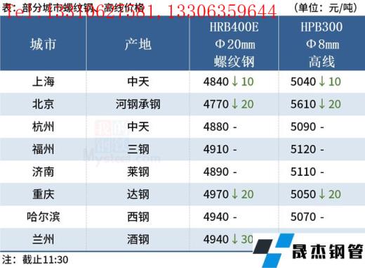 ◎重慶:18日早盤建材市場價格跌20,現達鋼螺4920、盤5050,永航螺4900、盤4960,瀘鋼螺4900、盤4960。 (單位:元/噸)