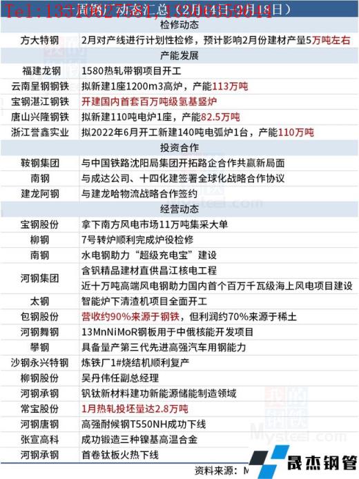 據(jù)不完全統(tǒng)計,本周(2月14日-2月18日)有1家無縫厚壁鋼管廠家發(fā)布檢修動態(tài),具體如下: