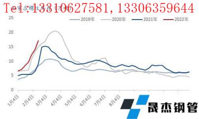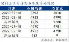 根據數據,截至2月18日,螺紋鋼全國均價4922元/噸,較上月19日上漲了232元/噸,較去年同期上漲了1229元/噸;石家莊地區建筑厚壁無縫鋼管價格在4790元/噸左右,較上月19日上漲了9元/噸,較春節后高點跌了230元/噸,當前價格較去年同期上漲1280元/噸。當前市場價格遠高于去年同期水平,但春節后價格上漲、下跌均快于全國平均水平。