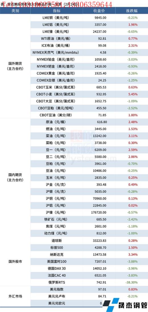 免責(zé)聲明:本網(wǎng)站(山東聊城晟杰無縫鋼管廠www.subnucleon.com)刊載的“受近期局勢影響大宗商品價(jià)格一覽表(2月24日)”等均源于網(wǎng)絡(luò),版權(quán)歸原作者所有,且僅代表原作者觀點(diǎn),本文所載信息僅供參考。轉(zhuǎn)載僅為學(xué)習(xí)與交流之目的,如無意中侵犯您的合法權(quán)益,請及時(shí)聯(lián)系刪除。本網(wǎng)站刊登此篇文章并不意味著本站贊同其觀點(diǎn)或證實(shí)其內(nèi)容的真實(shí)性,我們不對其科學(xué)性、嚴(yán)肅性等作任何形式的保證。如果侵犯了您的版權(quán),請盡快聯(lián)系我們予以撤銷,謝謝合作!