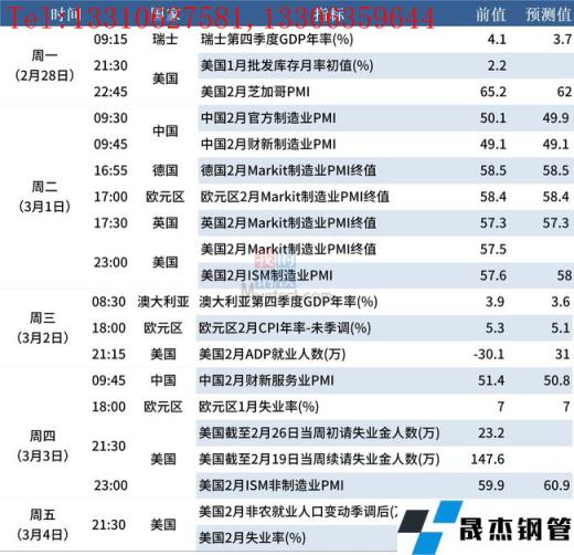 點(diǎn)評(píng):2月是制造業(yè)生產(chǎn)淡季,季節(jié)性因素導(dǎo)致PMI可能下降,預(yù)計(jì)制造業(yè)PMI可能在49.8%左右,穩(wěn)增長(zhǎng)力度加大有望推動(dòng)未來PMI指數(shù)上升。主要無縫厚壁鋼管廠家建筑厚壁無縫鋼管庫存上升,可能是基建投資預(yù)期改善帶來庫存需求。主要受疫情散發(fā)的影響,預(yù)計(jì)2月非制造業(yè)PMI下降到50.6%左右。