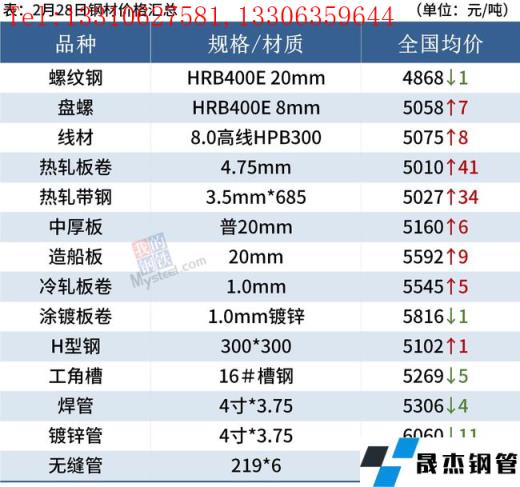 2月28日,國(guó)內(nèi)厚壁無(wú)縫鋼管市場(chǎng)多數(shù)上漲,唐山普方坯出廠價(jià)穩(wěn)報(bào)4550元/噸。隨著天氣回暖,下游終端及投機(jī)性需求均有好轉(zhuǎn)。今日黑色期貨市場(chǎng)普漲,部分商家順勢(shì)跟漲,但各品種、地區(qū)表現(xiàn)有所分化。