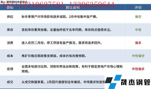 供應層面,隨著冬奧會結束,無縫厚壁鋼管廠家集中復產,若邯鄲地區限產不加嚴,預計未來一段時間無縫厚壁鋼管廠家周產量或維持130萬噸左右;流通環節,從貿易商庫存成本去分析,年前資源已經沒有利潤,年后到的資源已經虧損,短期存在成本支撐;需求方面,下游需求緩慢恢復中,雖不及預期,但好在廠庫、社庫均不高,需求尚有等待空間。綜合預計,短期市場存在底部支撐,預計本周中厚板價格企穩為主。