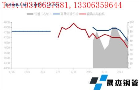 冬儲期間,也就是2月上旬與中旬FDTG建材南昌市場采取保價政策,即1月26日至2月5日無縫厚壁鋼管廠家定價為2月16日至2月25日這旬日定價均值,2月6日至2月15日無縫厚壁鋼管廠家定價為2月26日至3月7日期間日定價均值,當前2月上旬與下旬的無縫厚壁鋼管廠家定價已出,中旬定價還未出。南昌市場FDTG螺紋鋼成交價與無縫厚壁鋼管廠家每日定價差值,如下表所示。
