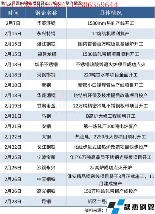 免責聲明:本網站(山東聊城晟杰無縫鋼管廠www.subnucleon.com)刊載的“2月國內18個鋼鐵項目開工、投產和復產”等均源于網絡,版權歸原作者所有,且僅代表原作者觀點,本文所載信息僅供參考。轉載僅為學習與交流之目的,如無意中侵犯您的合法權益,請及時聯系刪除。本網站刊登此篇文章并不意味著本站贊同其觀點或證實其內容的真實性,我們不對其科學性、嚴肅性等作任何形式的保證。如果侵犯了您的版權,請盡快聯系我們予以撤銷,謝謝合作!