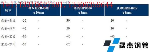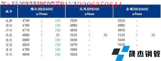 從川渝主要城市建筑厚壁無縫鋼管價格來看,西昌市場價格上漲30元/噸,而成都、綿陽、瀘州、南充、宜賓、重慶、萬州市場因計重方式調整,螺紋鋼價格由過磅改為理計,故下浮相對較大。