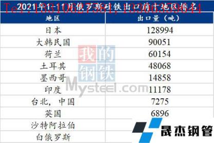 2021年1-11月,俄羅斯硅鐵合計出口39萬噸,其中出口至日本12.899萬噸,韓國9萬噸,印度1.12萬噸,占據(jù)總出口量約59%.。據(jù)俄羅斯相關企業(yè)透露,2021年俄羅斯硅鐵產(chǎn)量56.48萬噸,出口量42.54萬噸。