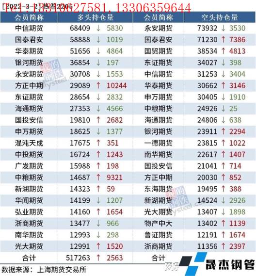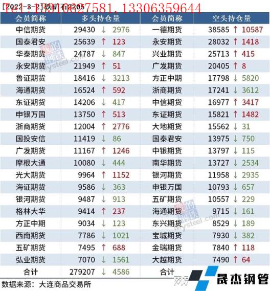 各品種持倉情況具體如下: