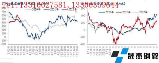 2月份全國(guó)各地市場(chǎng)價(jià)格均是在迎來(lái)開(kāi)門(mén)紅后又大幅下跌,全月價(jià)格累計(jì)漲幅均在100元/噸以?xún)?nèi),區(qū)域間價(jià)差較之前基本無(wú)變化,目前廣州-北京價(jià)差在300元/噸左右,此價(jià)差略低于2020年、2021年同期水平,且結(jié)合無(wú)縫厚壁鋼管廠家的政策以及運(yùn)費(fèi)來(lái)看此價(jià)差也不足以吸引北方區(qū)域資源南下廣州。目前杭州-北京價(jià)差100元/噸左右,因京津冀區(qū)域在產(chǎn)無(wú)縫厚壁鋼管廠家較少,且無(wú)縫厚壁鋼管廠家產(chǎn)量處于偏低水平,因此京津冀建材市場(chǎng)處于低供給情況,無(wú)向外分流的壓力,加之與其他區(qū)域的價(jià)差不大,故京津冀建材市場(chǎng)資源向華南、華東區(qū)域分流量不多。基于目前東北區(qū)域下游需求尚未啟動(dòng),且建龍系無(wú)縫厚壁鋼管廠家冬儲(chǔ)資源尚未投放結(jié)束,目前仍處于繼續(xù)投放階段。