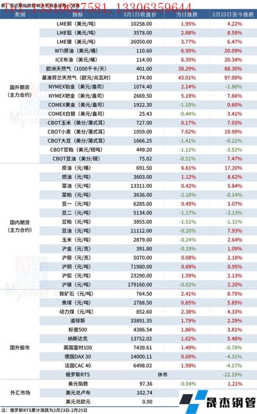 近期,受?chē)?guó)際局勢(shì)影響,全球金融及大宗商品市場(chǎng)出現(xiàn)較大波動(dòng)。3月2日,多個(gè)大宗商品價(jià)格創(chuàng)多年新高,天然氣累計(jì)漲幅超80%,原油突破110美金。匯總情況如下: