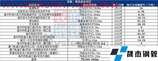 未來2-3年福建省鐵路、地鐵項目在建新建線路總長約1060.845公里,據不完全統計預計總用鋼量約283.082萬噸左右。