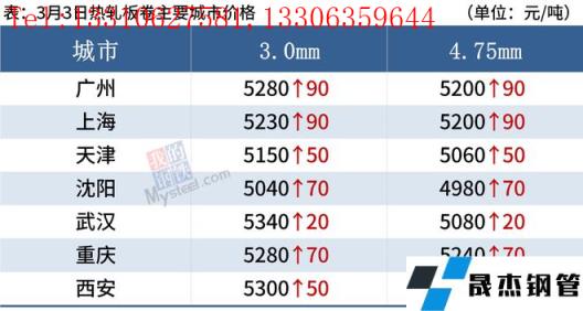 3月3日,國內厚壁無縫鋼管市場普遍上漲,唐山普方坯出廠價漲50報4680元/噸。由于國際大宗商品價格普漲,加之國內鐵礦石期貨大漲,投機性需求再度活躍,今日厚壁無縫鋼管期現市場繼續走強。