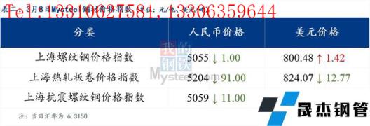 3月8日普鋼絕對價格指數(shù)變化:綜合指數(shù)5305.16,下跌18.78;螺紋鋼指數(shù)5036.67,下跌14.09;線材指數(shù)5371.79,下跌9.76;熱軋板卷指數(shù)5245.35,下跌44.87;冷軋板卷指數(shù)5664.11,下跌27.59;中厚板指數(shù)5263.85,下跌11.41。