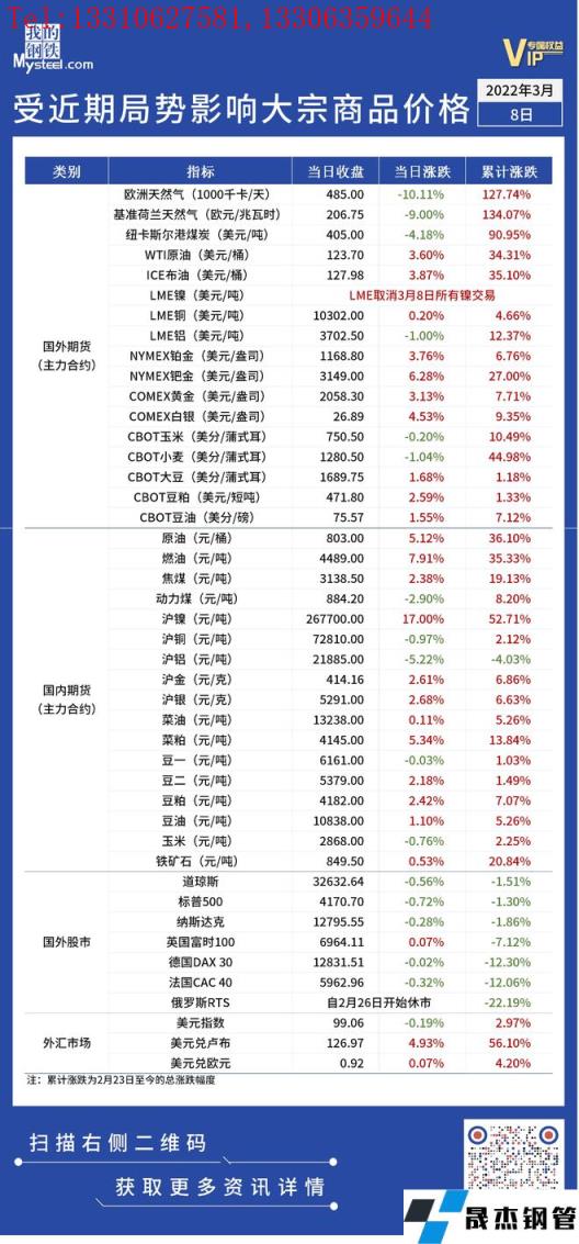 免責聲明:本網站(山東聊城晟杰無縫鋼管廠www.subnucleon.com)刊載的“受近期局勢影響大宗商品價格一覽表(3月8日)”等均源于網絡,版權歸原作者所有,且僅代表原作者觀點,本文所載信息僅供參考。轉載僅為學習與交流之目的,如無意中侵犯您的合法權益,請及時聯系刪除。本網站刊登此篇文章并不意味著本站贊同其觀點或證實其內容的真實性,我們不對其科學性、嚴肅性等作任何形式的保證。如果侵犯了您的版權,請盡快聯系我們予以撤銷,謝謝合作!