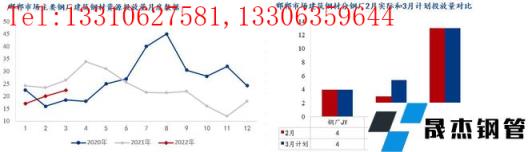 回顧:2月京津冀建筑厚壁無縫鋼管價格先揚后抑,節前價格企穩反彈,節后需求還未恢復,價格無量空漲,月底快速回落。2月主導無縫厚壁鋼管廠家對主要市場資源投放總量105.6萬噸,環比減少0.3萬噸,同比減少11.1萬噸。鐵礦、煤焦等原料價格上漲,螺紋鋼生產成本在4400-4600元/噸,無縫厚壁鋼管廠家螺紋利潤持續低位,供應量也維持偏低水平。