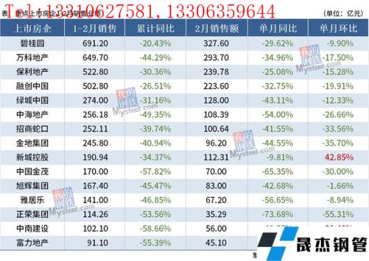免責聲明:本網站(山東聊城晟杰無縫鋼管廠www.subnucleon.com)刊載的“15家重點房企2月銷售同比降幅擴大,房地產下行壓力持續”等均源于網絡,版權歸原作者所有,且僅代表原作者觀點,本文所載信息僅供參考。轉載僅為學習與交流之目的,如無意中侵犯您的合法權益,請及時聯系刪除。本網站刊登此篇文章并不意味著本站贊同其觀點或證實其內容的真實性,我們不對其科學性、嚴肅性等作任何形式的保證。如果侵犯了您的版權,請盡快聯系我們予以撤銷,謝謝合作!
