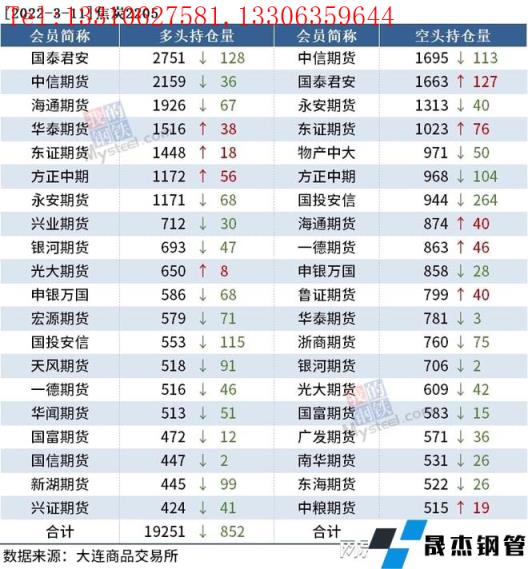 各品種持倉情況具體如下: