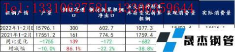綜上所述,1-2月粗鋼實(shí)際消費(fèi)同比降幅僅為5%,明顯高于市場預(yù)期。但從后期供需預(yù)估表現(xiàn)來看,厚壁無縫鋼管復(fù)產(chǎn)節(jié)奏或高于需求釋放力度,進(jìn)而使得消費(fèi)承壓,價格上漲難度加大。