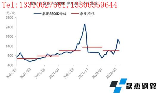 3月供需緊張疊加國際煤價上漲,帶動國內上漲。3月重大會議及賽事召開,以及貴州煤礦事故發生,煤炭主產區安全檢查將加嚴,同時多地疫情反復以及海外地緣沖突影響全球煤炭資源供應結構改變,我國進口煤倒掛嚴重,導致企業轉向國產礦采購增多,但國內煤礦增產空間有限,導致3月煤炭供應緊張情況或加劇。3月天氣逐步轉暖,中下旬北方取暖季結束,煤炭需求將有所下降。此外,3月全國疫情爆發,建筑業施工單位停工增多,制造業生產以及其他行業也受到一定影響,全國用電需求難保持高增長,非發電用煤需求較好,整體煤炭需求表現依然尚可。目前,控價格方面,經批準的長協價為570-770元(以下均對應5500大卡)要嚴格執行,基準價所有煤炭企業按675元執行,坑口價不得超700元,港口不得超900元,管控長協煤力度大,市場煤受限制不大,需求較好,疊加海外地緣沖突影響國際煤價大漲,進而支撐煤價出現大幅上漲。不過,在依法加強市場監管以及陸續釋放煤礦增產信息下,煤價沖高后出現回落。