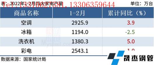 免責聲明:本網站(山東聊城晟杰無縫鋼管廠www.subnucleon.com)刊載的“統計局:1-2月中國四大家電產量3增1降”等均源于網絡,版權歸原作者所有,且僅代表原作者觀點,本文所載信息僅供參考。轉載僅為學習與交流之目的,如無意中侵犯您的合法權益,請及時聯系刪除。本網站刊登此篇文章并不意味著本站贊同其觀點或證實其內容的真實性,我們不對其科學性、嚴肅性等作任何形式的保證。如果侵犯了您的版權,請盡快聯系我們予以撤銷,謝謝合作!