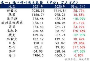 引言:我國原木進口多年來保持正增長,在2020年的4665.6萬立方米基數(shù)下,2021年進口針葉原木同比增加仍舊達6.83個點 ,現(xiàn)國際形勢波動,在保整內(nèi)需情況下預計進口格局將有調(diào)整。