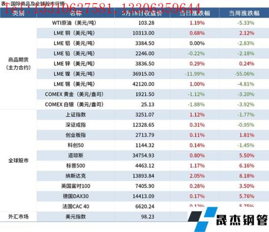 金融市場:倫鎳開盤后連續3日跌停,周度大跌55.06%;全球股市中,中國股市下跌,歐美股市上漲;美元指數收于98.23,下跌0.91%。