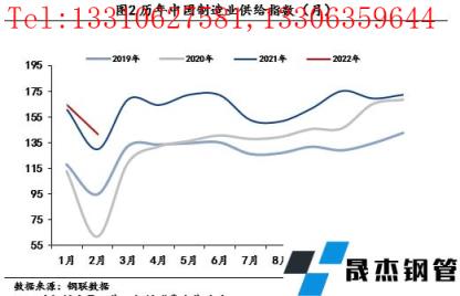 鋼鐵是終端制造業(yè)的重要生產(chǎn)原材料,以鋼鐵消費(fèi)趨勢為觀測視角可以較為準(zhǔn)確的判斷下游制造業(yè)發(fā)展?fàn)顩r。2月鋼鐵業(yè)供給指數(shù)為146.92,同比下降5.26,環(huán)比下降2.86%。北方地區(qū)在采暖季和冬奧會(huì)環(huán)保影響下,厚壁無縫鋼管產(chǎn)量管控依然嚴(yán)格。據(jù)統(tǒng)計(jì),2月全國粗鋼產(chǎn)量6738.5萬噸,日均產(chǎn)量240.66萬噸,環(huán)比減少9.79萬噸,降幅3.91%,同比下降13.86%。消費(fèi)方面,五大品種厚壁無縫鋼管消費(fèi)環(huán)比下降19.63%,同比下降4%。具體來看,房地產(chǎn)資金緊張雖有緩解,但受季節(jié)影響,用鋼量繼續(xù)下降,建筑厚壁無縫鋼管表觀消費(fèi)量環(huán)比下降38%。制造業(yè)方面,受春節(jié)和疫情干擾因素影響,2月份,制造業(yè)企業(yè)復(fù)工復(fù)產(chǎn)較晚,實(shí)際用鋼消費(fèi)下降,其中熱卷消費(fèi)同比下降7.4%,環(huán)比下降8.2%。