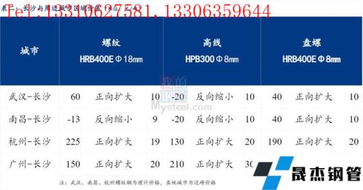 統(tǒng)一為理計(jì)單位后,武漢高于長沙60元/噸,南昌低于長沙13元/噸,杭州高于長沙225元/噸,廣州高于長沙150元/噸。