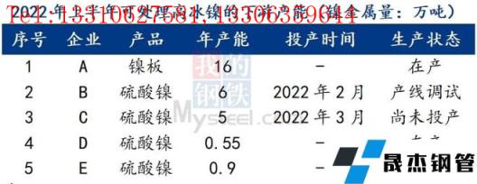 隨著新能源產業的高速發展,市場對鎳需求增長,高冰鎳作為硫酸鎳原料的作用也被重視起來。預計2022年上半年,國內可處理高冰鎳的設備產能鎳金屬量1.34萬噸/月。
